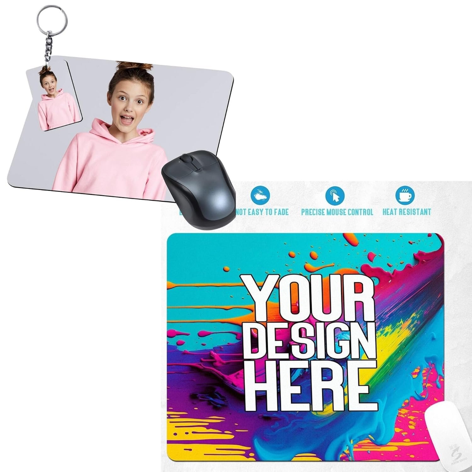 Note: The uploaded photo, logo, or text will be printed on both Mousepads and the Keychain.